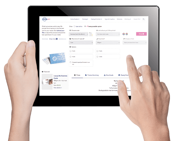 If you already have a business card design, you just need to choose what kind of card takes your fancy, then upload your file. Once you’ve checked out, we’ll get it onto the printing press right away.